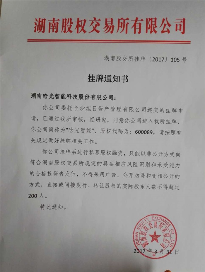 球友会体育(中国)官方网站于3月31日在湖南股权交易所成功挂牌四板(标准